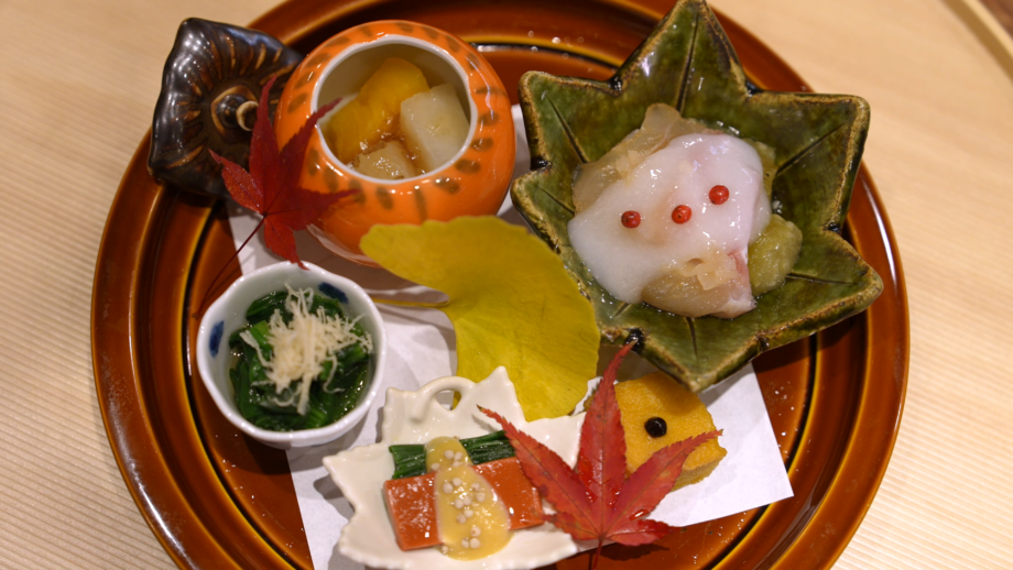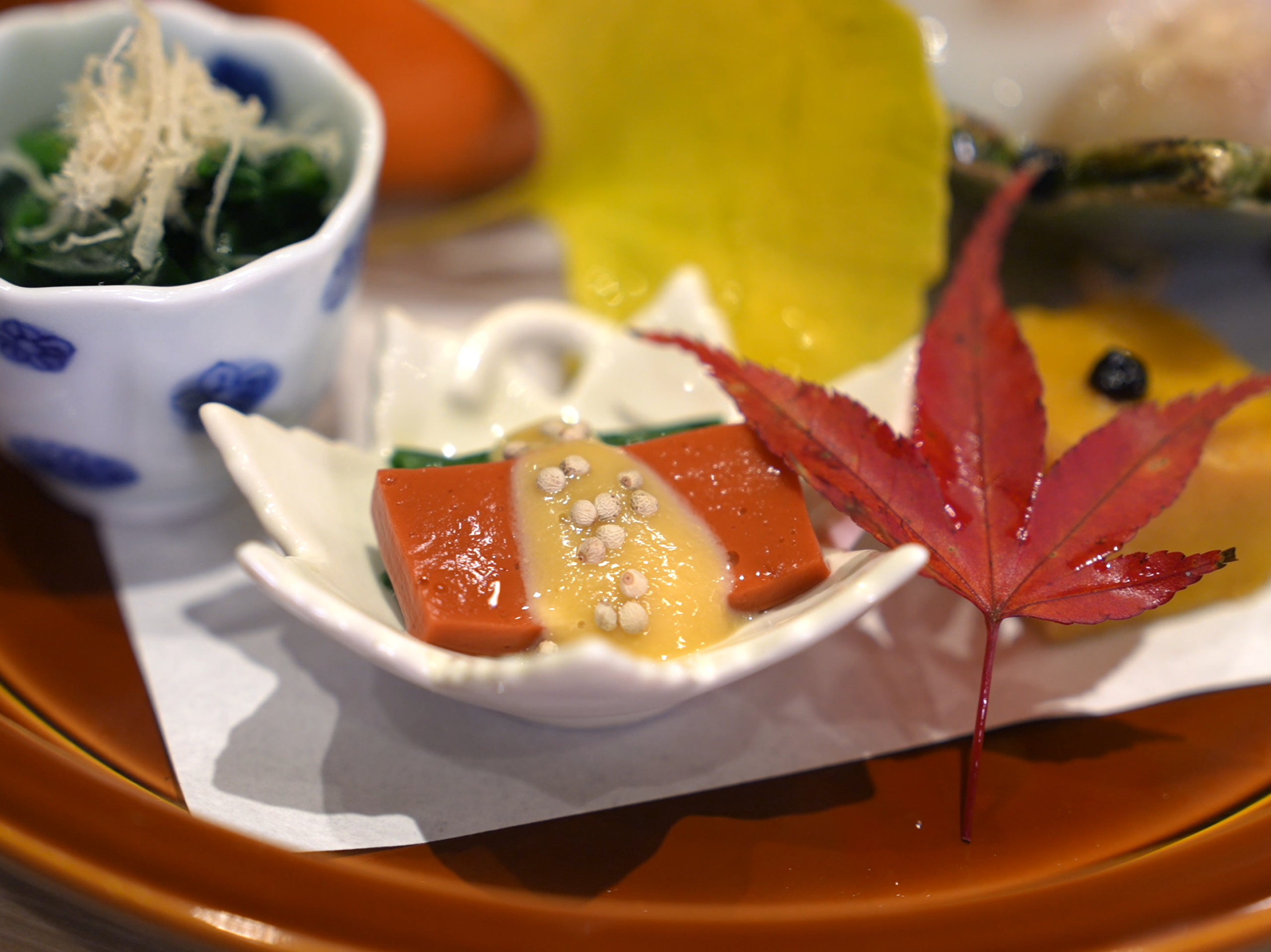 コースは先付けから始まり、会席コースは季節の品へと続く。器使いや盛り付けに映し出される季節感と美しさに、思わず感嘆の声が上がる。