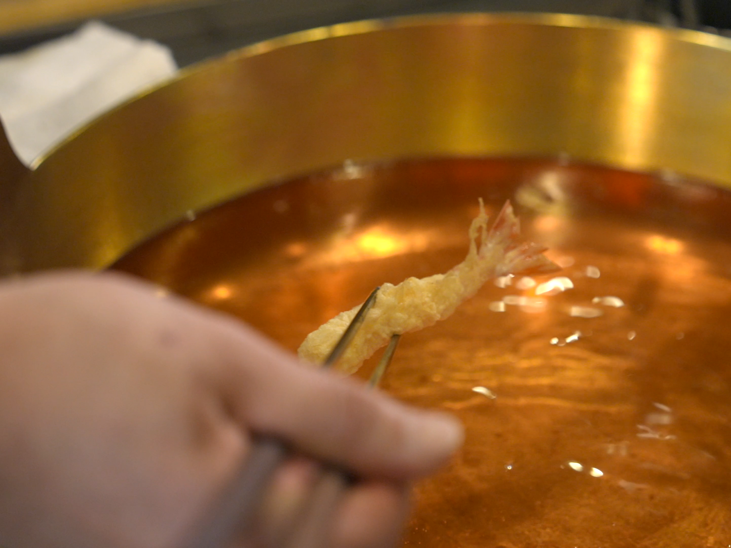 「一番美味しく揚がる油でしたが、揚げるのが非常に難しかったんです。それがなぜなのかわからなくて、徹底的に向き合いましたね」。素材や時間を変えながら、揚げ上がりを試す日々。温度調整など、向き合えば向き合うほど難しさが残ったという。「綿実油は衣と油の乳化スピードの関係で技術が求められますが、揚がりはとても軽くて内部の水分を保つので、蒸し焼きのような状態になるんです」。