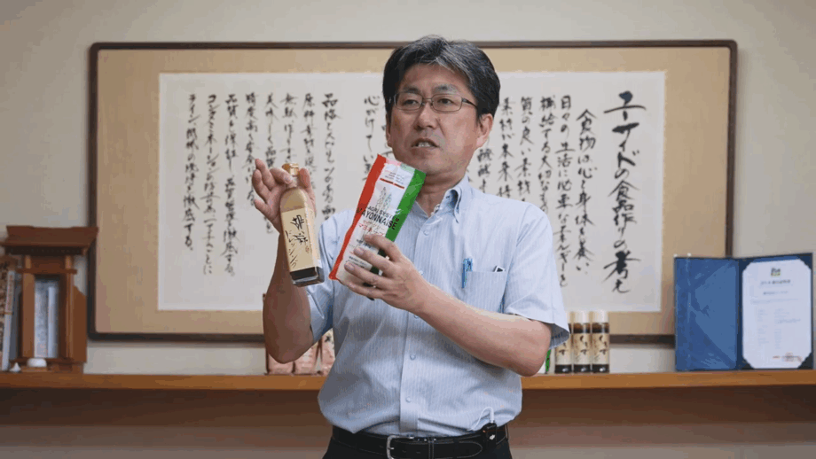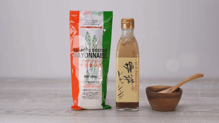 久保田さんに、オススメの商品を尋ねてみた。「『セイアグリーマヨネーズ』のベースがあって『胡麻ドレッシング』が作られるので、この二つですね。私も子どもの頃から食べている、うちの看板商品です」